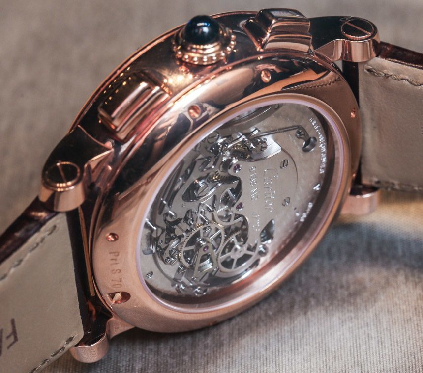 Sports a fresh and unique layout of hand-wound chronographs, thanks to the large Cartier-marked bridge ensuring the chronograph’s wheels, and the busy arrangement of highly polished cameras, levers, and of course a cylindrical gear in the lower left part of the case. Beyond the layout of the components, which makes the caliber 9438 MC more unique, it is actually not a sport designed and manufactured by Cartier Replica interior, but they come from APR&P (Audenique Renaud & Dad we visited recently).